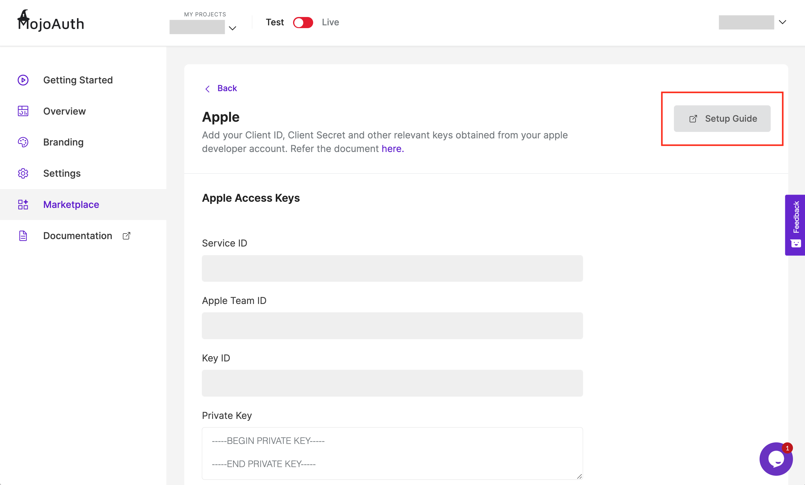 After login in MojoAuth, access your API credentials through the dashboard and use it in our JS framework or APIs.
