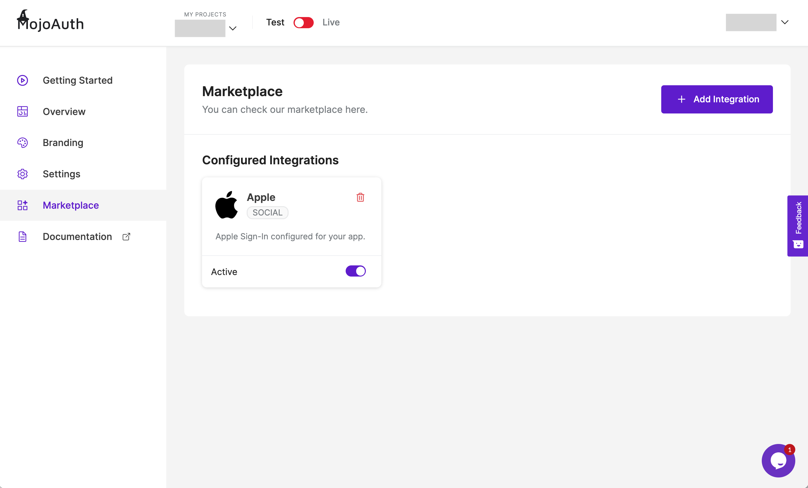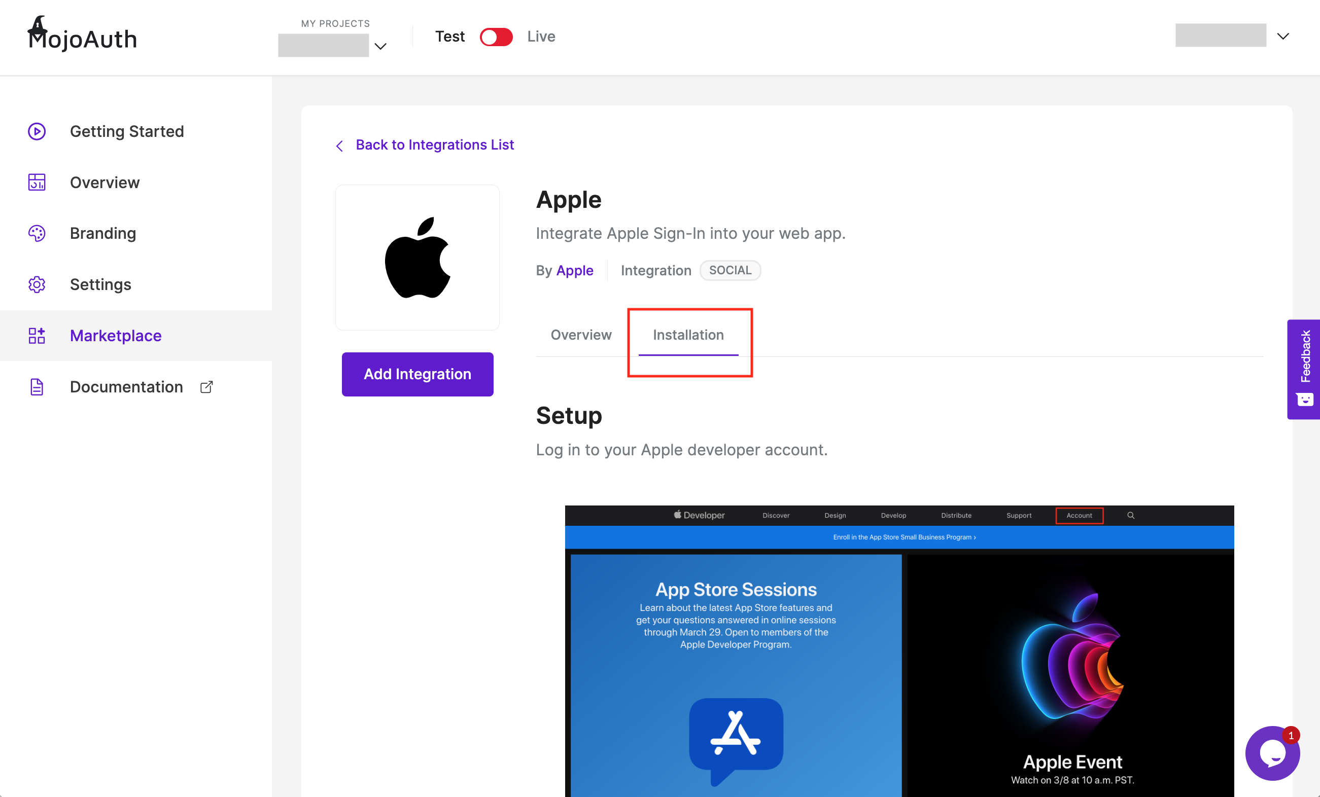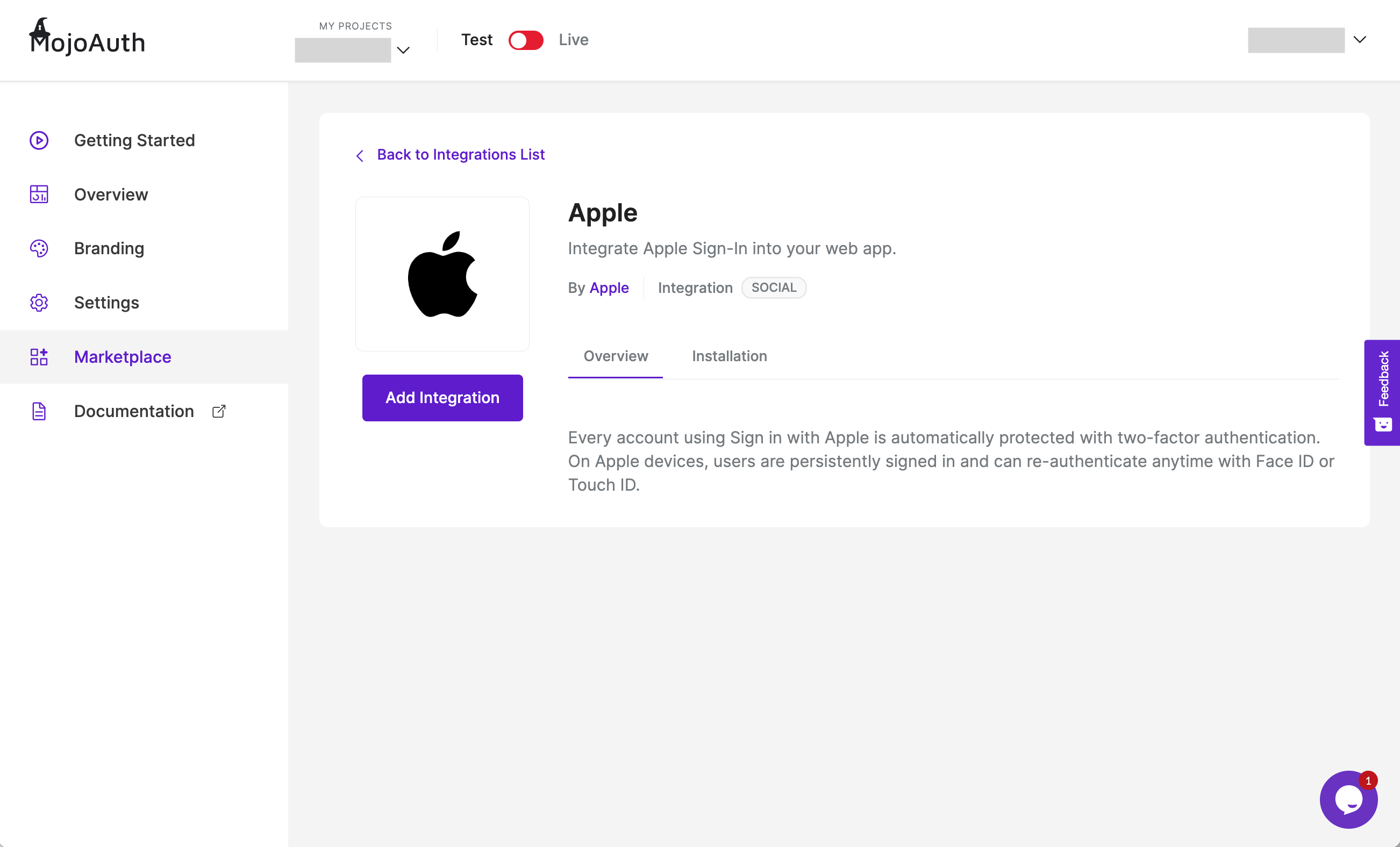 Click on Add Integration and configure your Apple social Login if you have your social ID and secret.